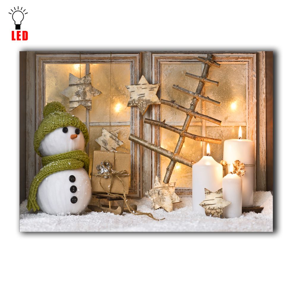 Led Canvas Art Wall Decor Lighted Candles With Christmas Snowman
