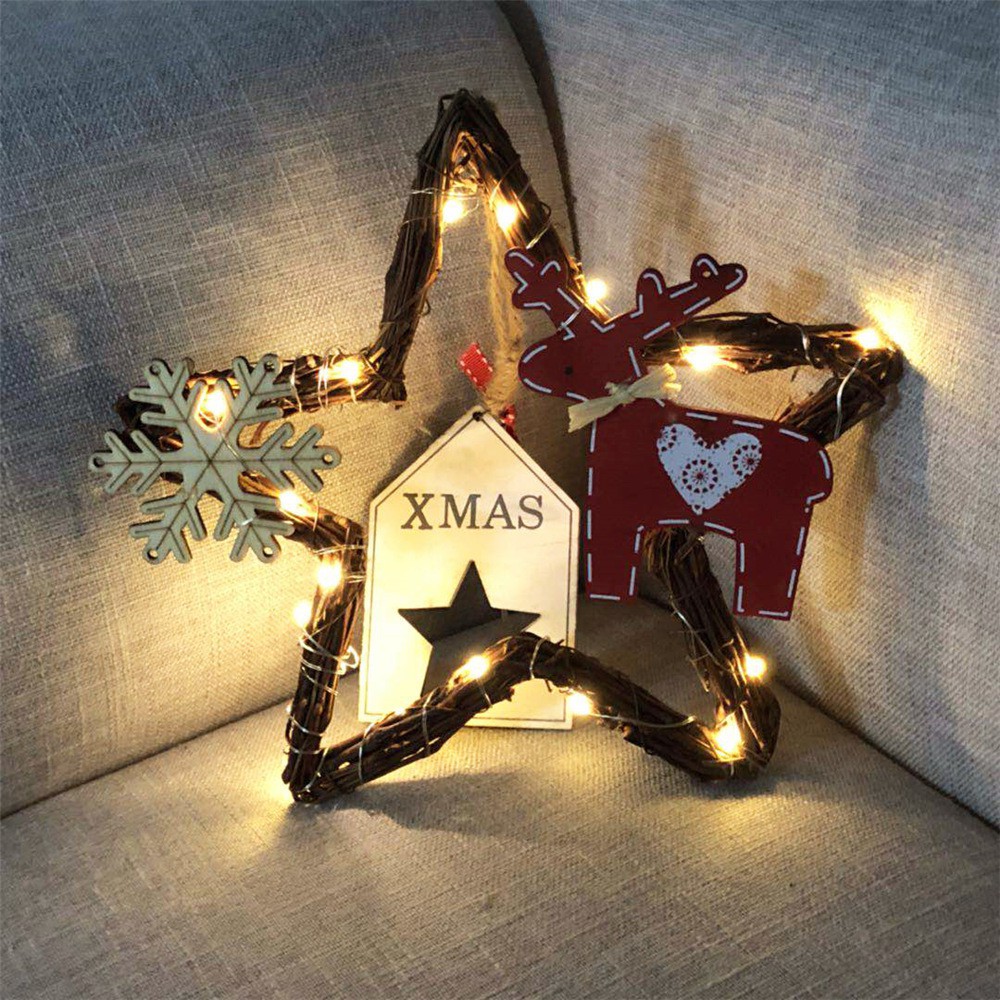Diy Rattan Wreath String Lights Lamp Christmas Door Wall Decor