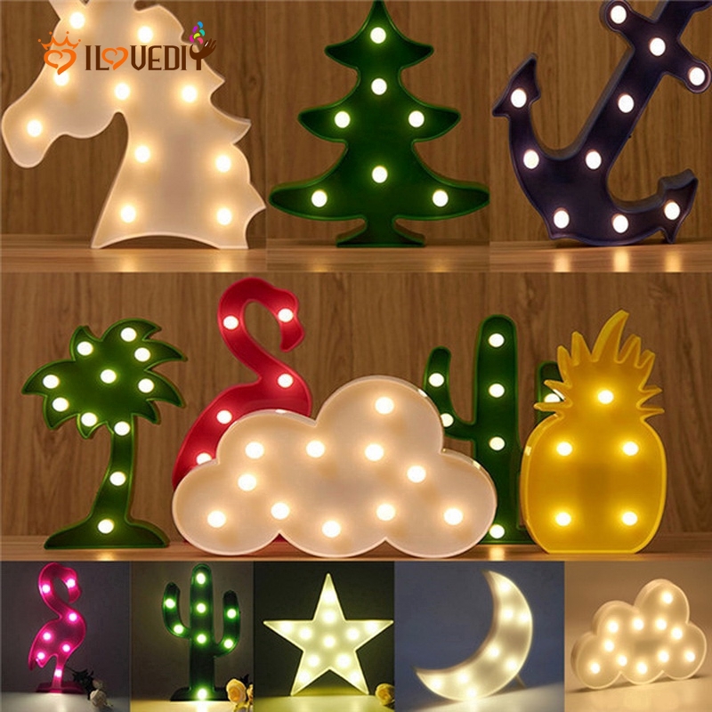 Unicorn Cactus Pineapple Heart Cartoon Led Night Light Kids Room