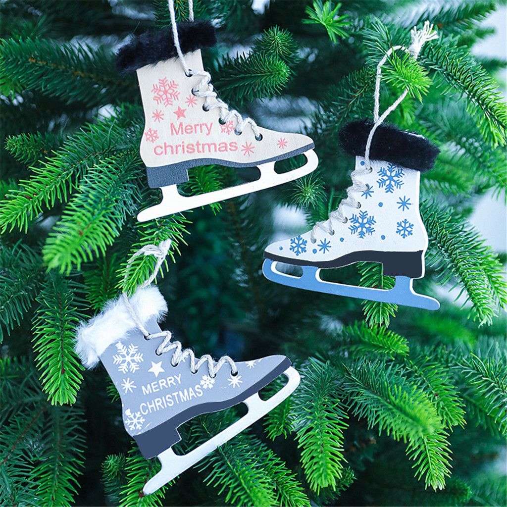 S X 3pcs Set Christmas Sleigh Wooden Pendant Decoration Pendant