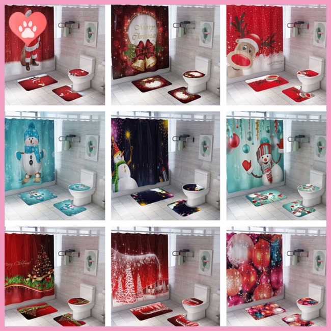 4pcs 3pcs 1pc Set Christmas Tree Snowman Bathroom Shower Curtain
