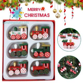 6pcs Christmas Train Locomotive Pendant Colored Wooden Crafts