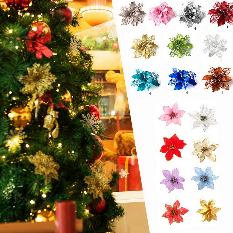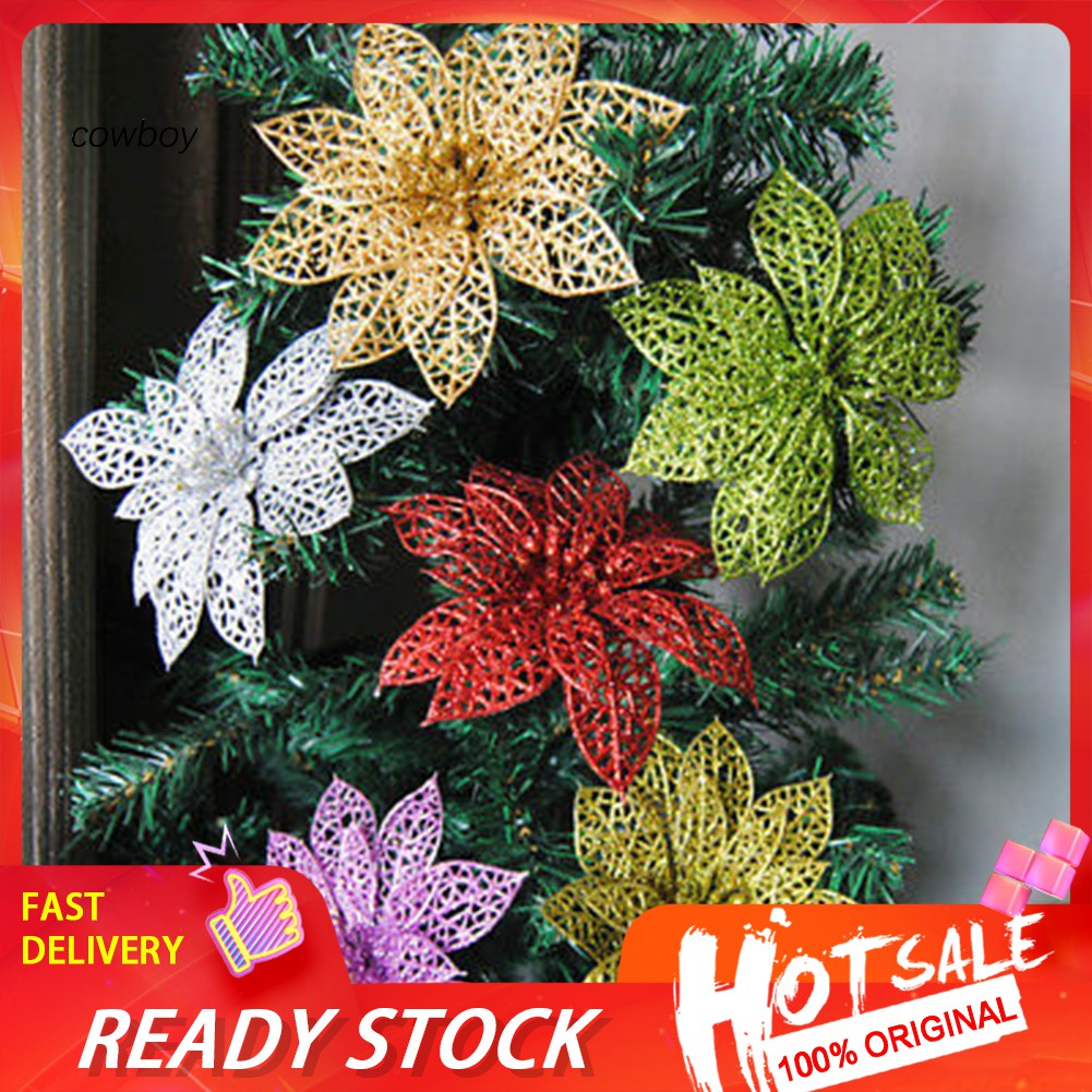 Cod 1set 10pcs Hiasan Pohon Natal Aksesoris Bunga Christmas Tree