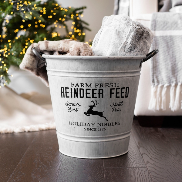 Galvanized Reindeer Feed Bucket Kirklands