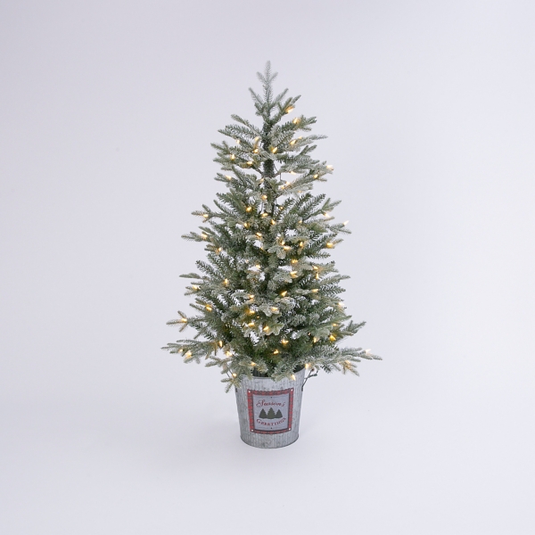 Lighted 36 Artificial Spruce Tree In Galvanized Metal Bucket