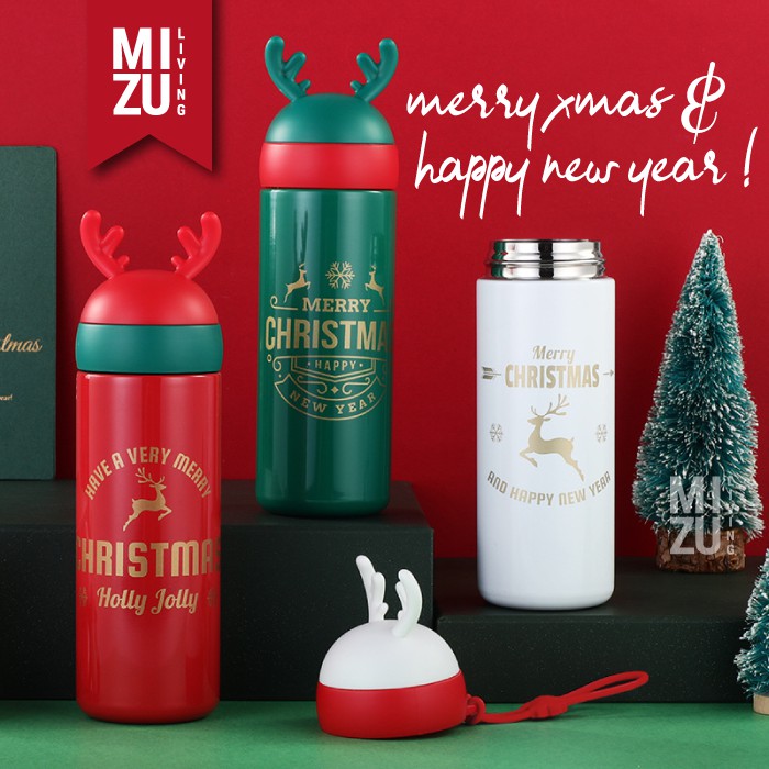 Christmas Reindeer Thermos Water Bottle Botol Air Minum 330ml