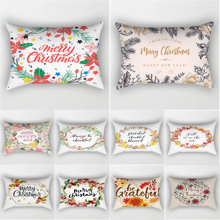 18 Christmas Wreath Pillow Case Cotton Linen Cushion Cover Home