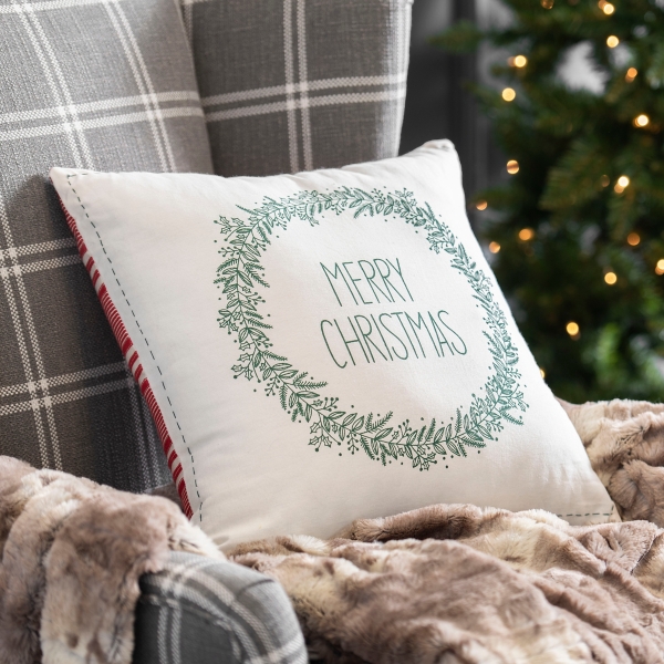 Merry Christmas Wreath Throw Pillow Cover Emory Valley Mercantile
