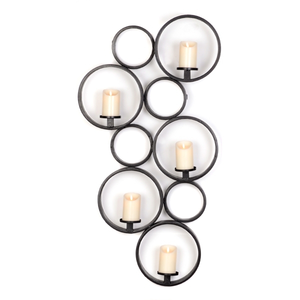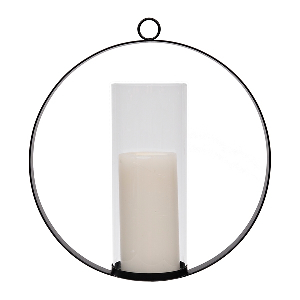 Black Iron Contemporary Hanging Circle Candle Sconce Wall