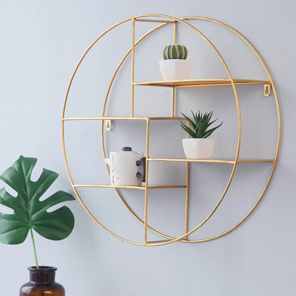 Nordic Wrought Iron Four Tier Rack Round Simple Gold Wall Decoration Living Room Creative Storage Wall Hanging Lo813238 Bathroom Shelves Aliexpress