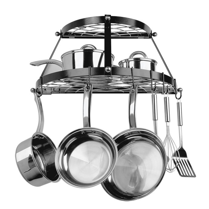 Range Kleen Double Shelf Wall Mounted Pot Rack In Black Bed Bath Beyond