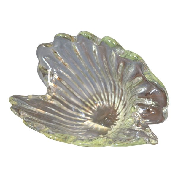 Archimede Seguso Hand Blown Clear Murano Glass Clam Shell Bowl