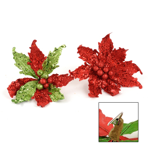 Glitzy Red Green Clip On Poinsettias Kirklands