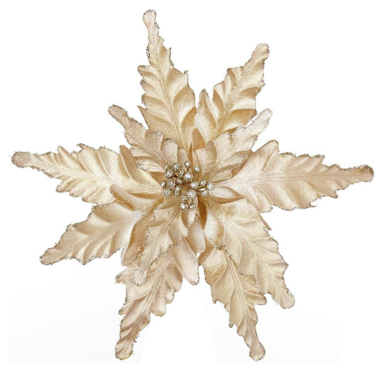 Poinsettia Cream Champagne With Clip 10cm Christmas Elves Store