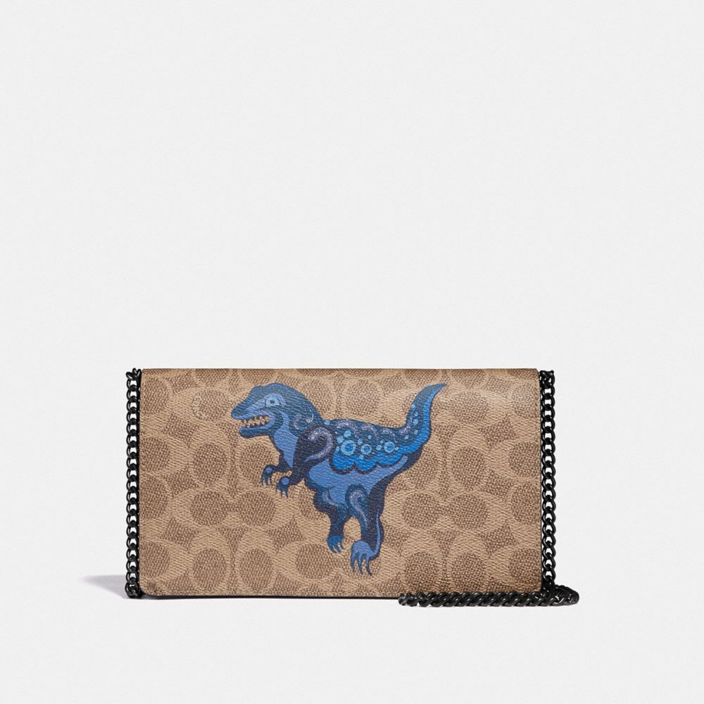 Coach Callie Foldover Chain Clutch In Signature Canvas With Rexy