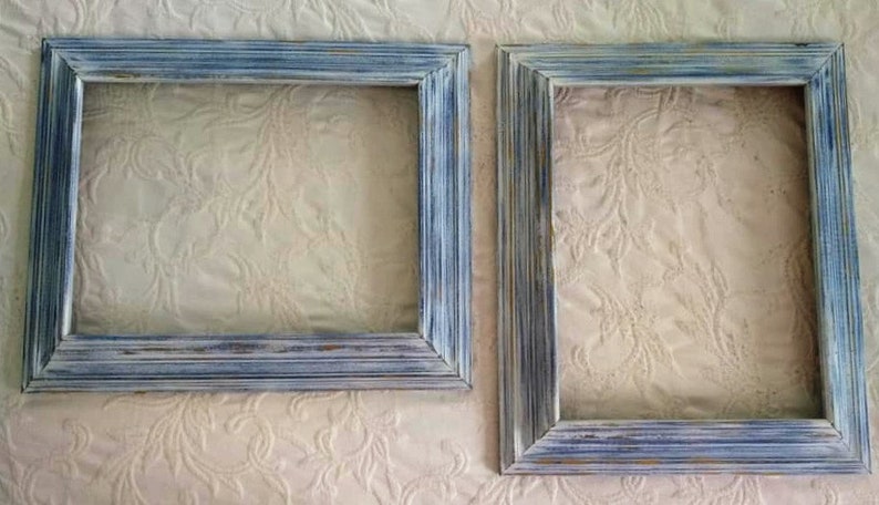 Pair Of Wooden Frames Coastal Frames Blue And White Decor Etsy