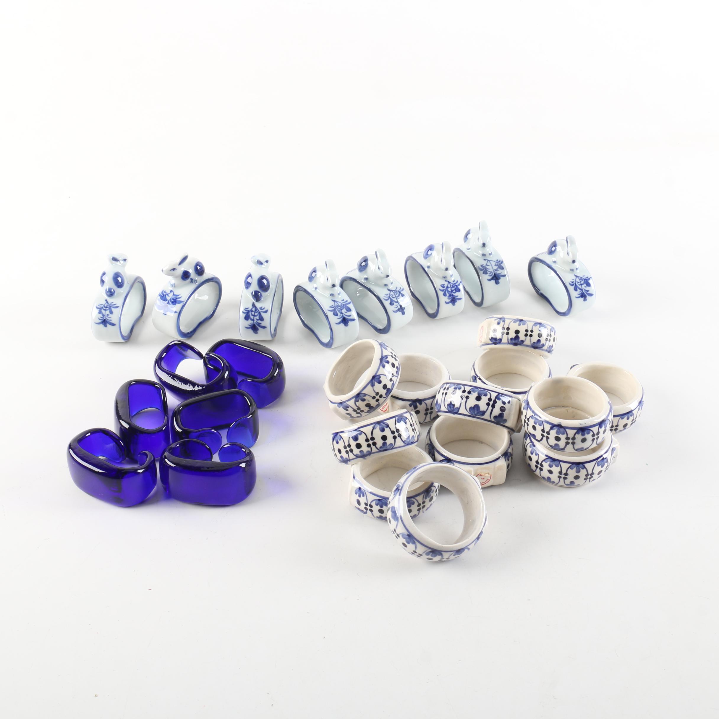 Blue And White Glass And Ceramic Napkin Rings Ebth