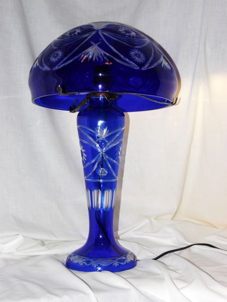 Cut To Clear Glass Table Lamp With Lighted Base Cobalt Blue