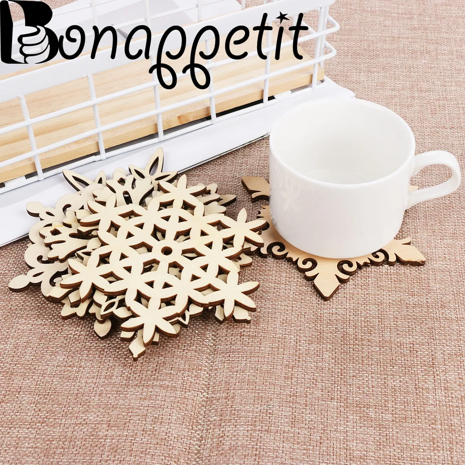 1 2pcs Christmas Wooden Carved Mug Pads Holder Coffee Tea Drinks