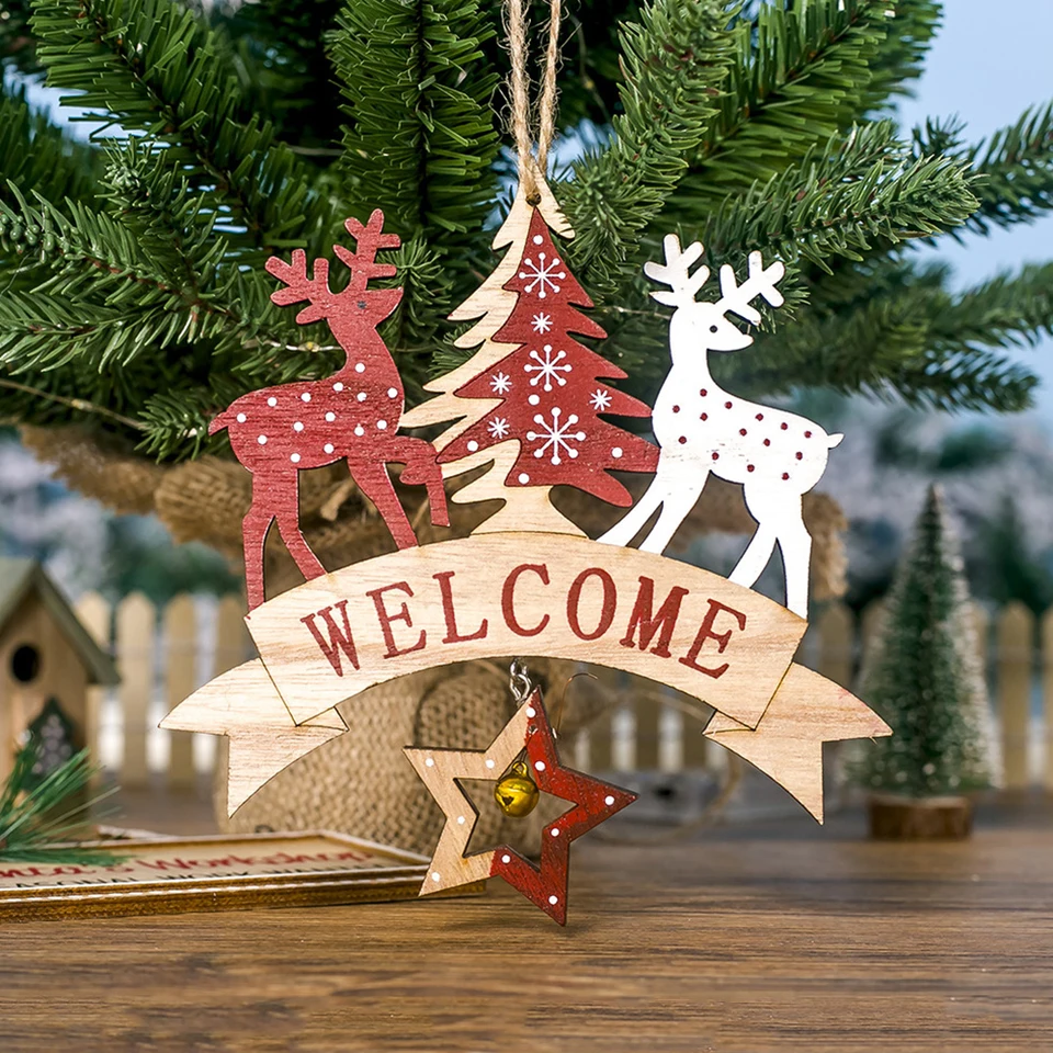 Elk Bird Christmas Tree Bells Pendant Wooden Ornaments Welcome
